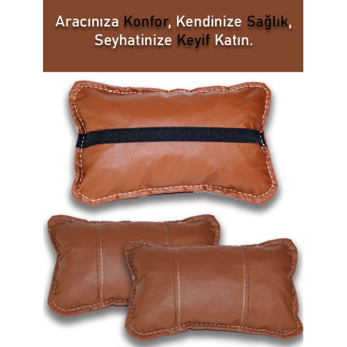 - Deri Araç Boyun Yastığı 2 Adet (Taba Renk) Seyahat Boyun Yastığı